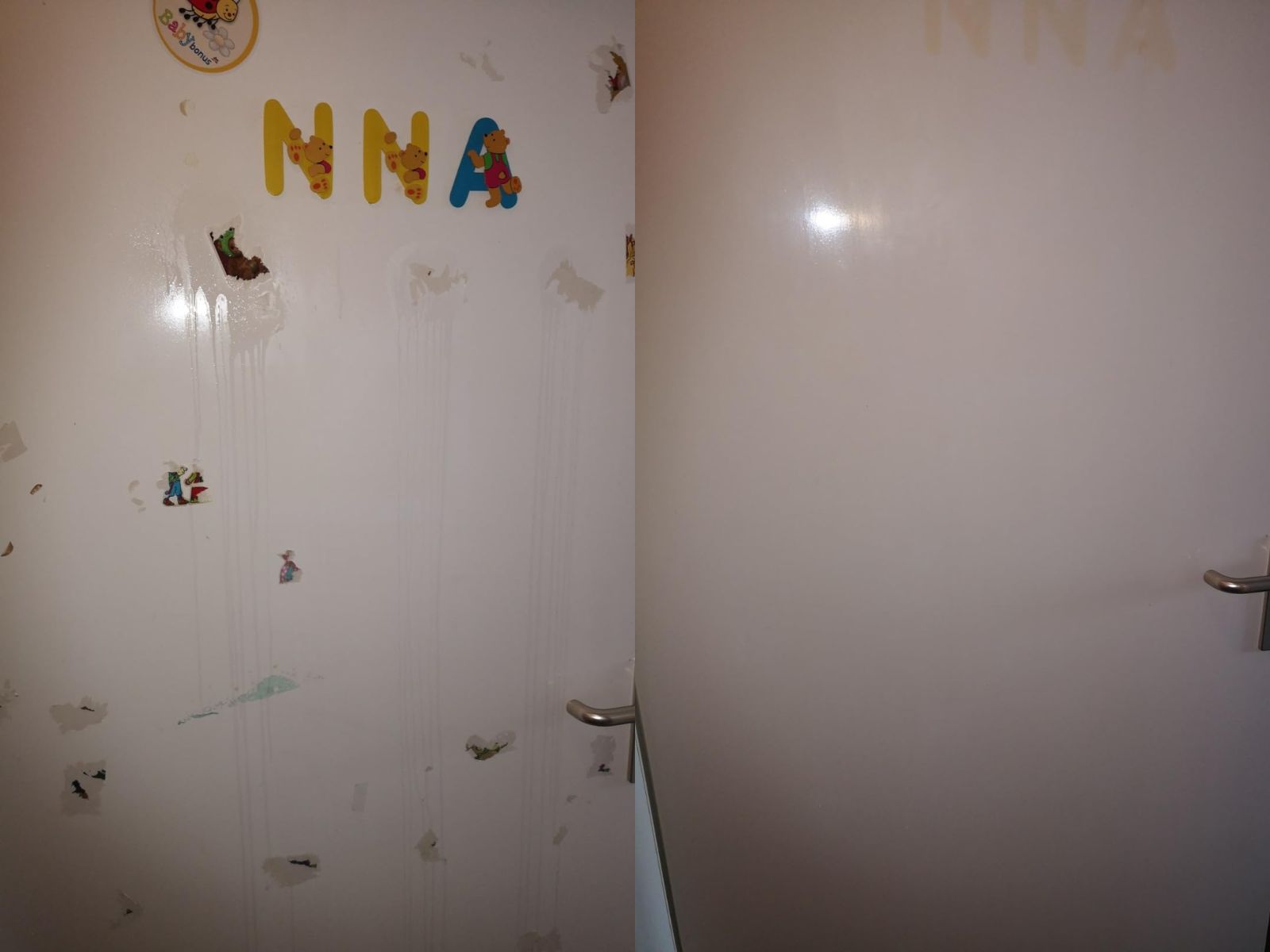 "Endlich nach Jahren eine saubere Kinderzimmer-Tür. Das Produkt hält was es verspricht. Ich habe Jahrelang nach einem mittel gesucht, das Aufkleber-Reste an lackierten Türen schonend entfernt."